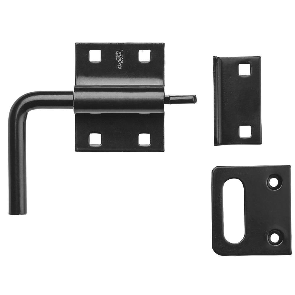 National Hardware's gate latch is designed for left- and right-swinging doors and gates. Black-plated steel finish for style and superior durability. Mounting hardware included for installation. Inclu…