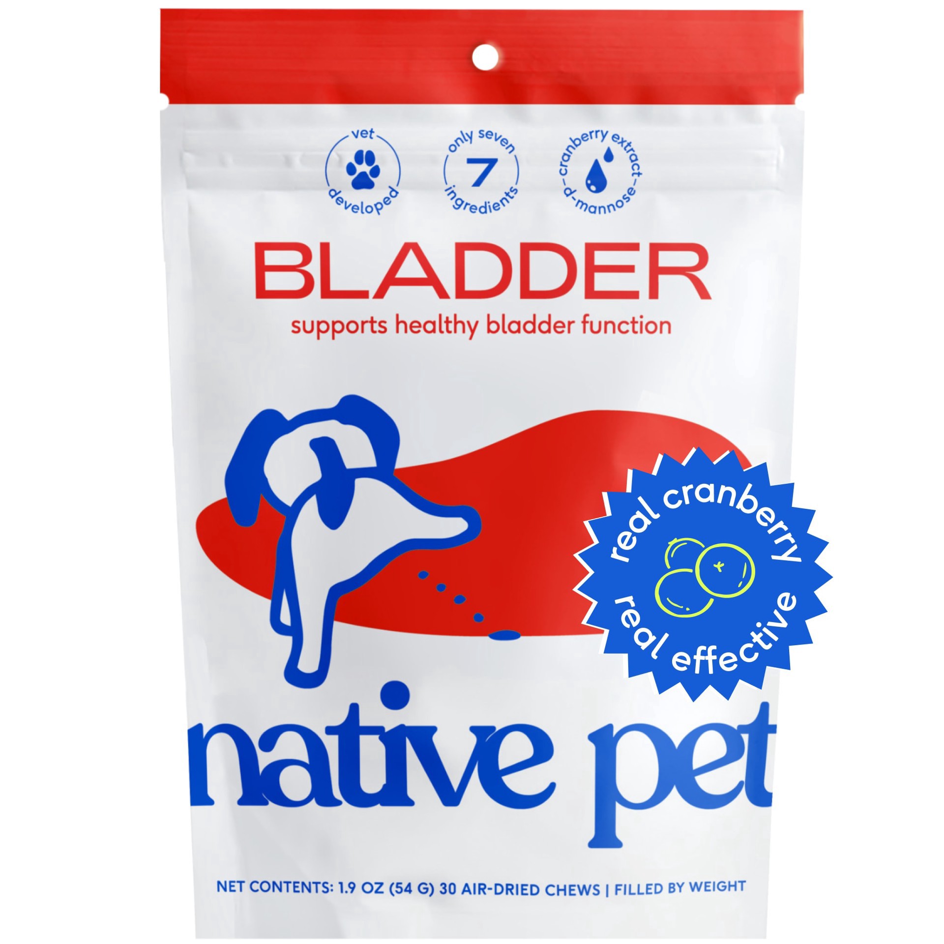 Help support your dog's urinary healthy and kidney healthy with Native Pet's Bladder Chews. Made in collaboration with a skilled veterinarian nutritionist, these chewable supplements are designed to f…