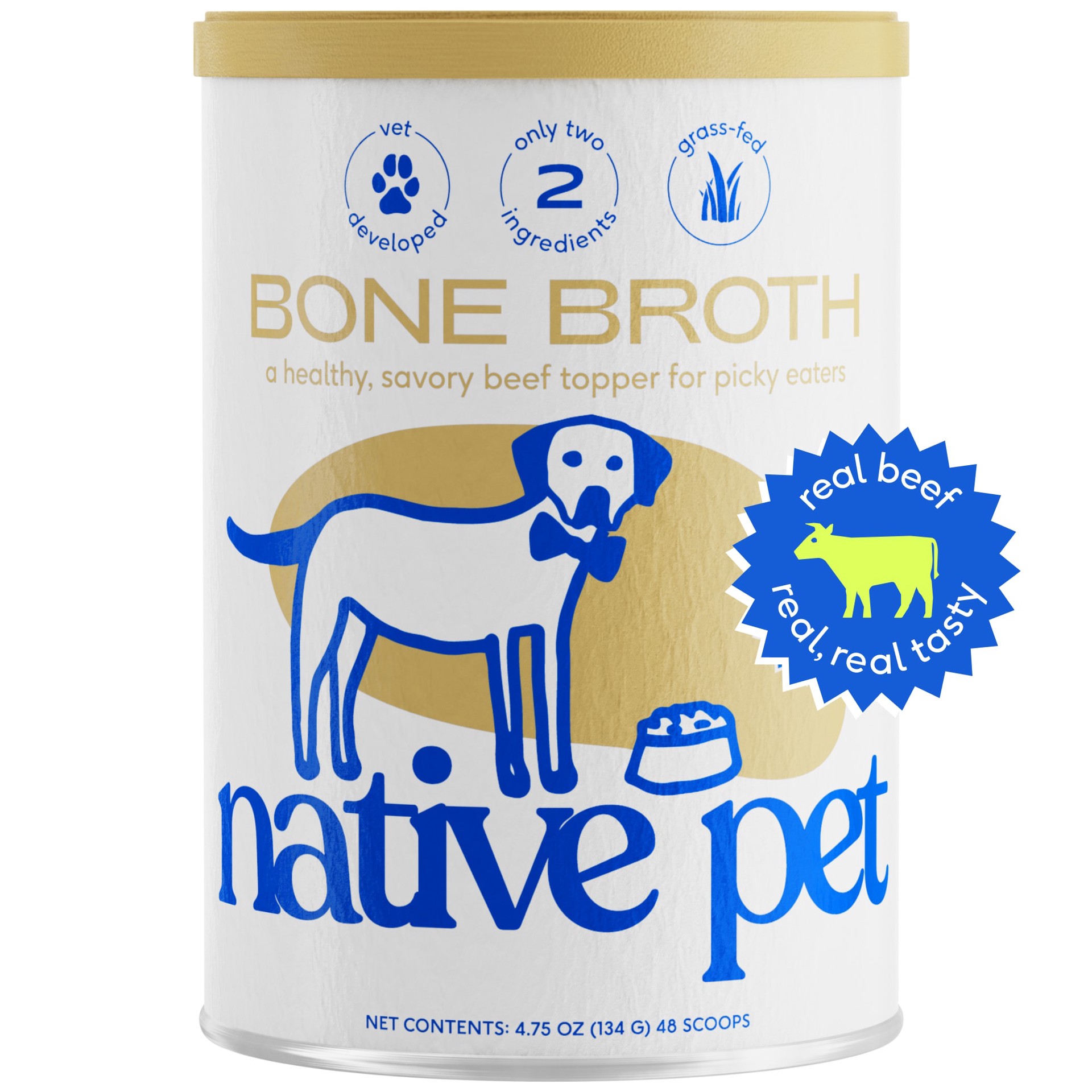 Upgrade your dogs dried kibble with this super-nutritious and totally delicious Beef Bone Broth Powder. Combined with water, it re-hydrates their food with a little bit of grass-fed goodness. This sav…