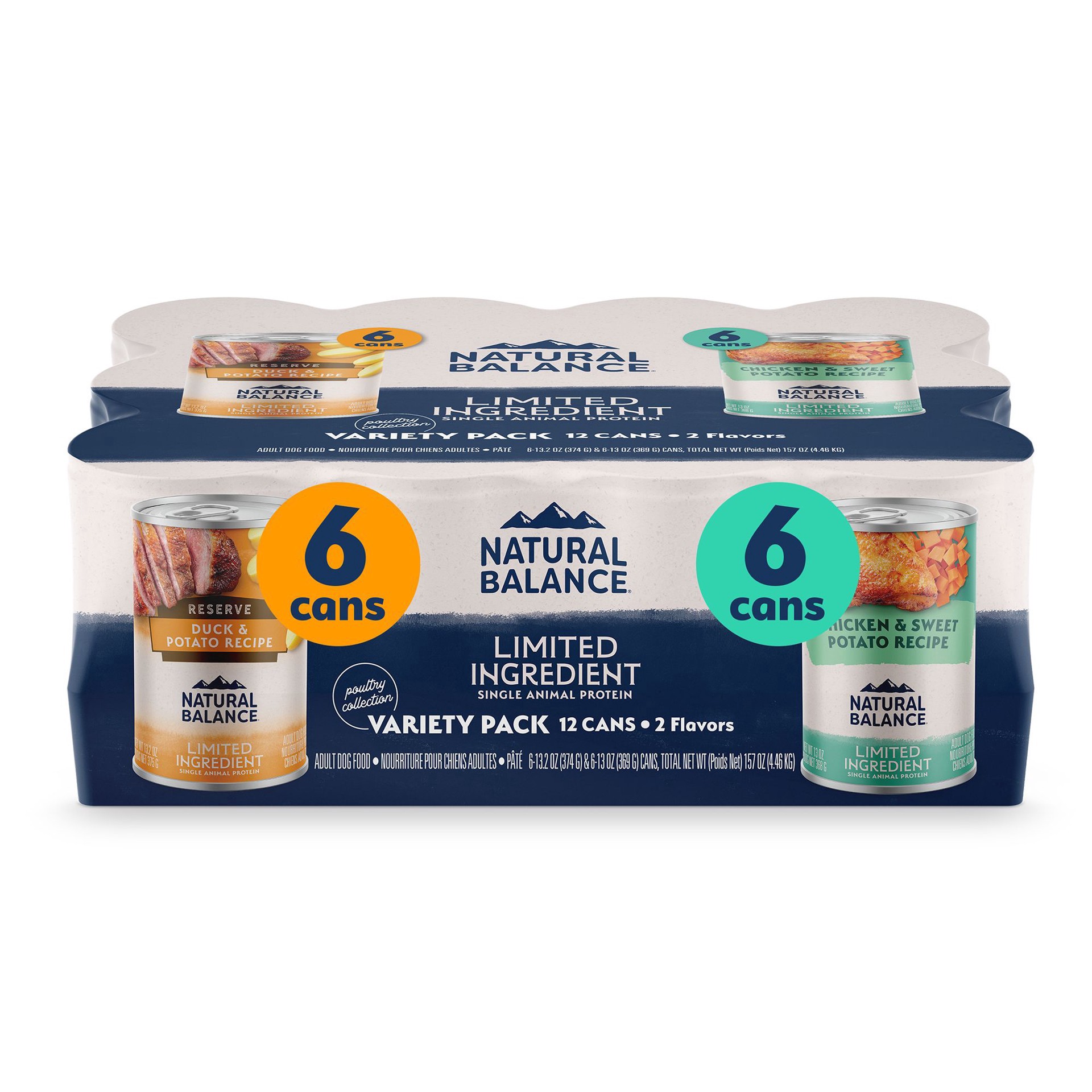 Natural Balance Limited Ingredient Reserve Duck, Potato and Chicken & Sweet Potato Wet Dog Food Variety Pack, 13 oz., Case of 12