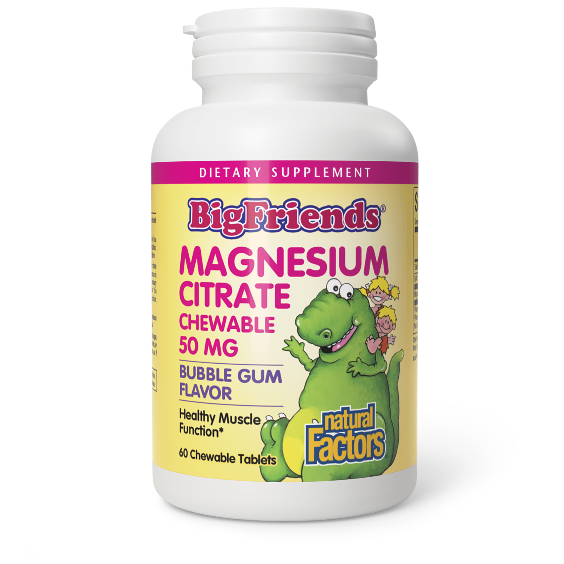 Natural Factors Kid''s Magnesium features 50 mg of bioavailable magnesium citrate in a delicious bubble gum-flavored chewable tablet. The citrate form of magnesium is extremely well absorbed and well …
