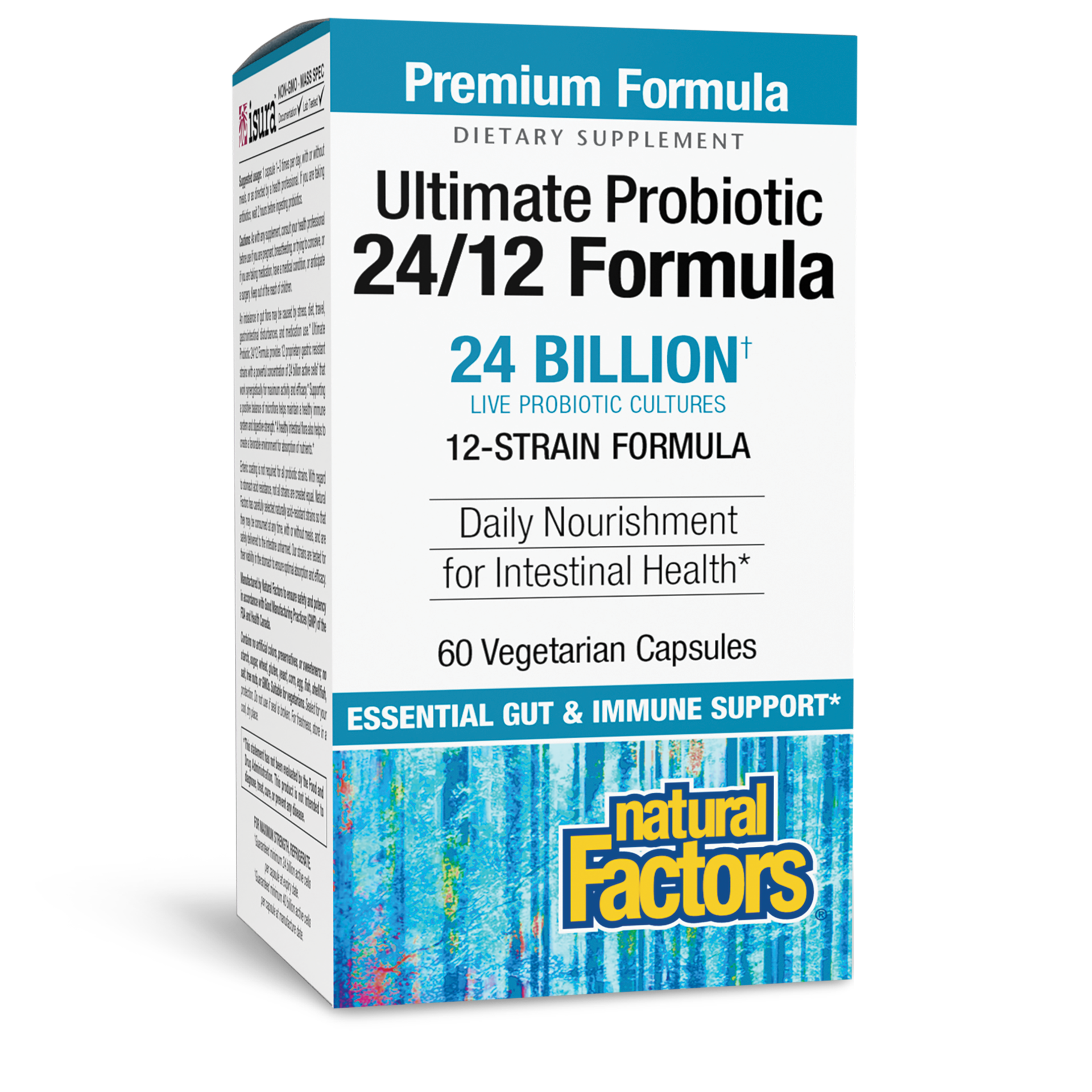 Natural Factors is a leader in probiotic science and innovation with over 35 years' experience.Ultimate Probiotic 24/12 Formula is a proprietary blend of 12 gastric-resistant strains with a powerful c…