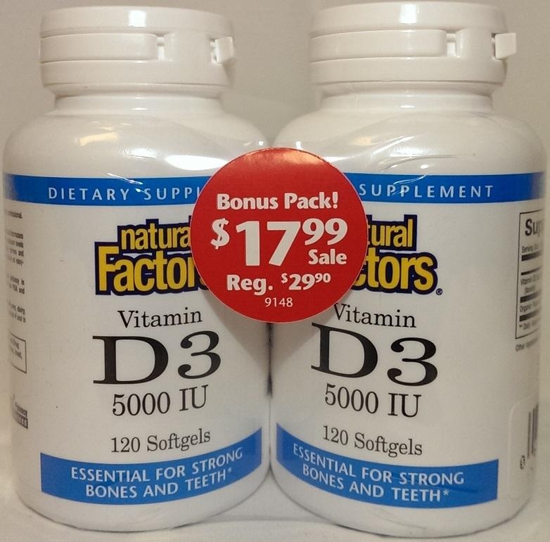Natural Factors Vit D3 5000 Iu Bonus Pk