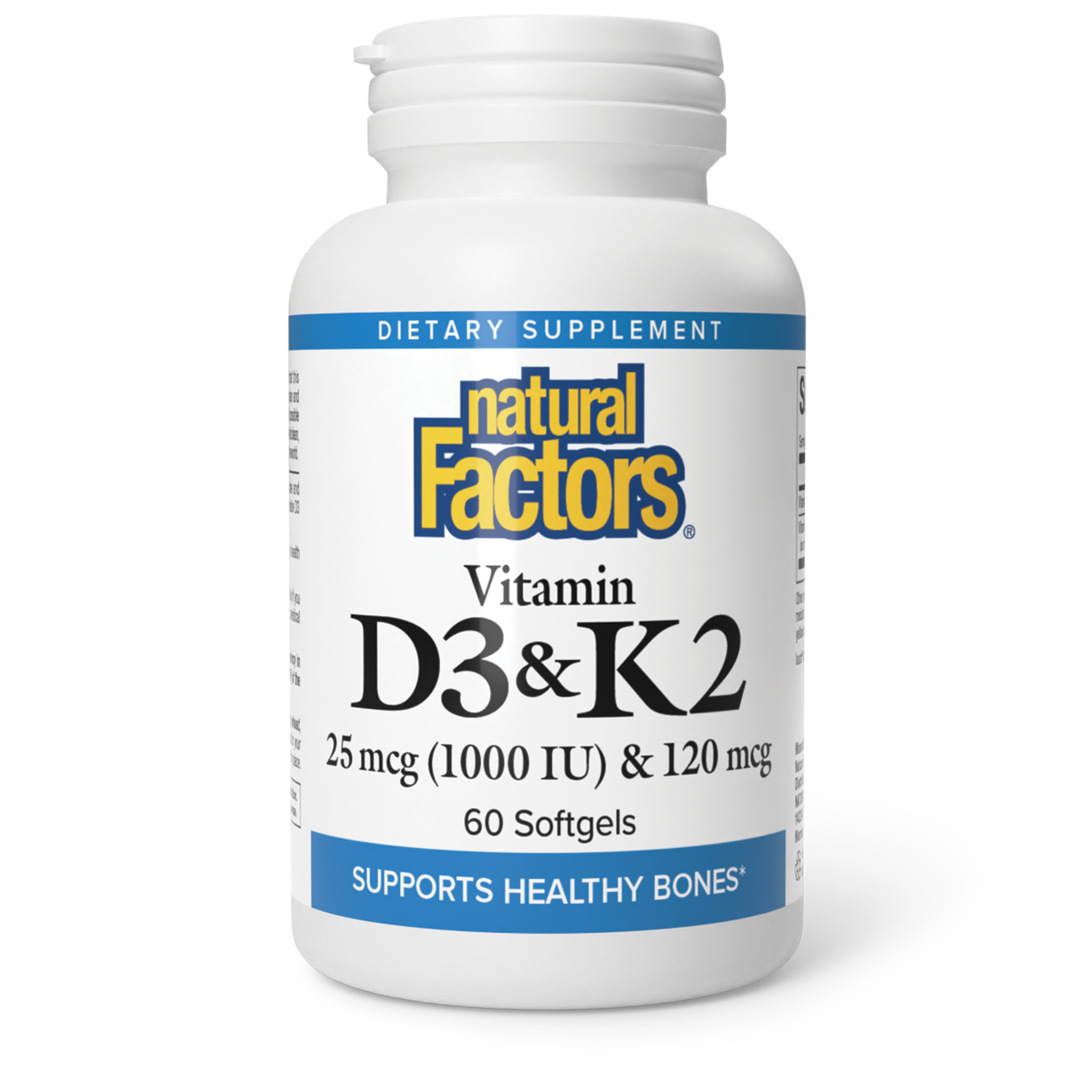 Combining vitamins D and K may provide even better support than the individual nutrients for bone and vascular health.* Contains the bioactive and highly bioavailable D3 and MK-7 forms.