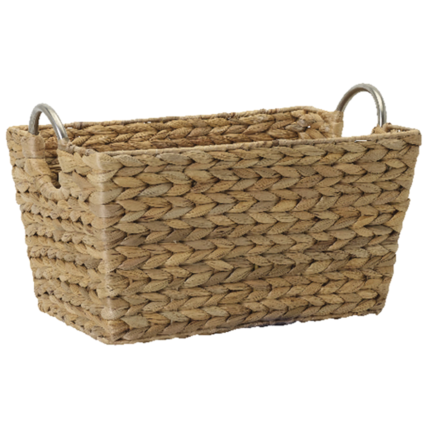 Natural Havana Hyacinth Rectangular Basket with Chrome Ring Handles