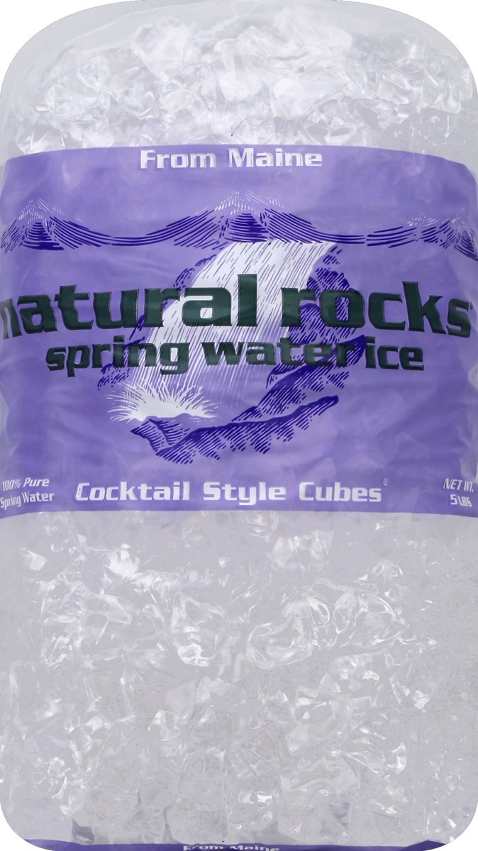 100% pure spring water. From Maine. Natural rocks are square cocktail style ice cubes made from 100% pure Maine spring water. Natural rocks ice company selects only the best quality spring water to pr…
