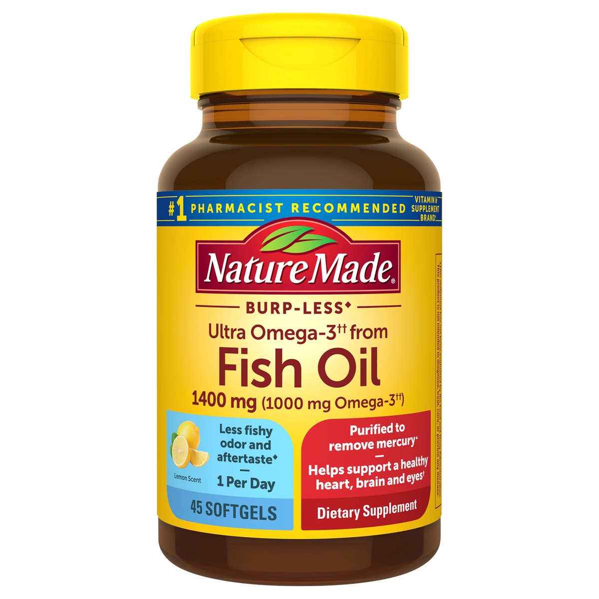 Nature Made Extra Strength Omega-3 (1) from Fish Oil 2800 mg per serving Softgels, lemon scent, help support a healthy heart, brain, eyes, and mood. This Nature Made Omega 3 Fish Oil for men and women…