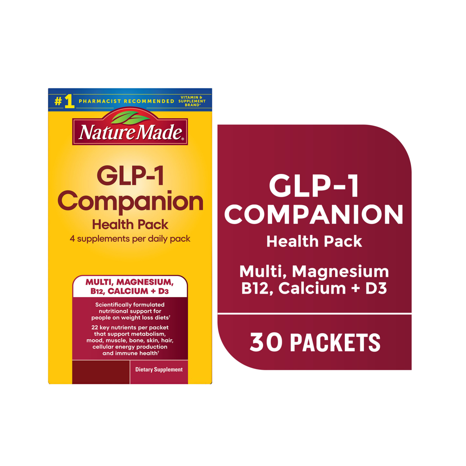 Nature Made GLP-1 Companion Health Pack provides 4 supplements per daily pack. Daily womens multivitamin / mens multivitamins will provide essential vitamins and minerals for daily nutritional support…