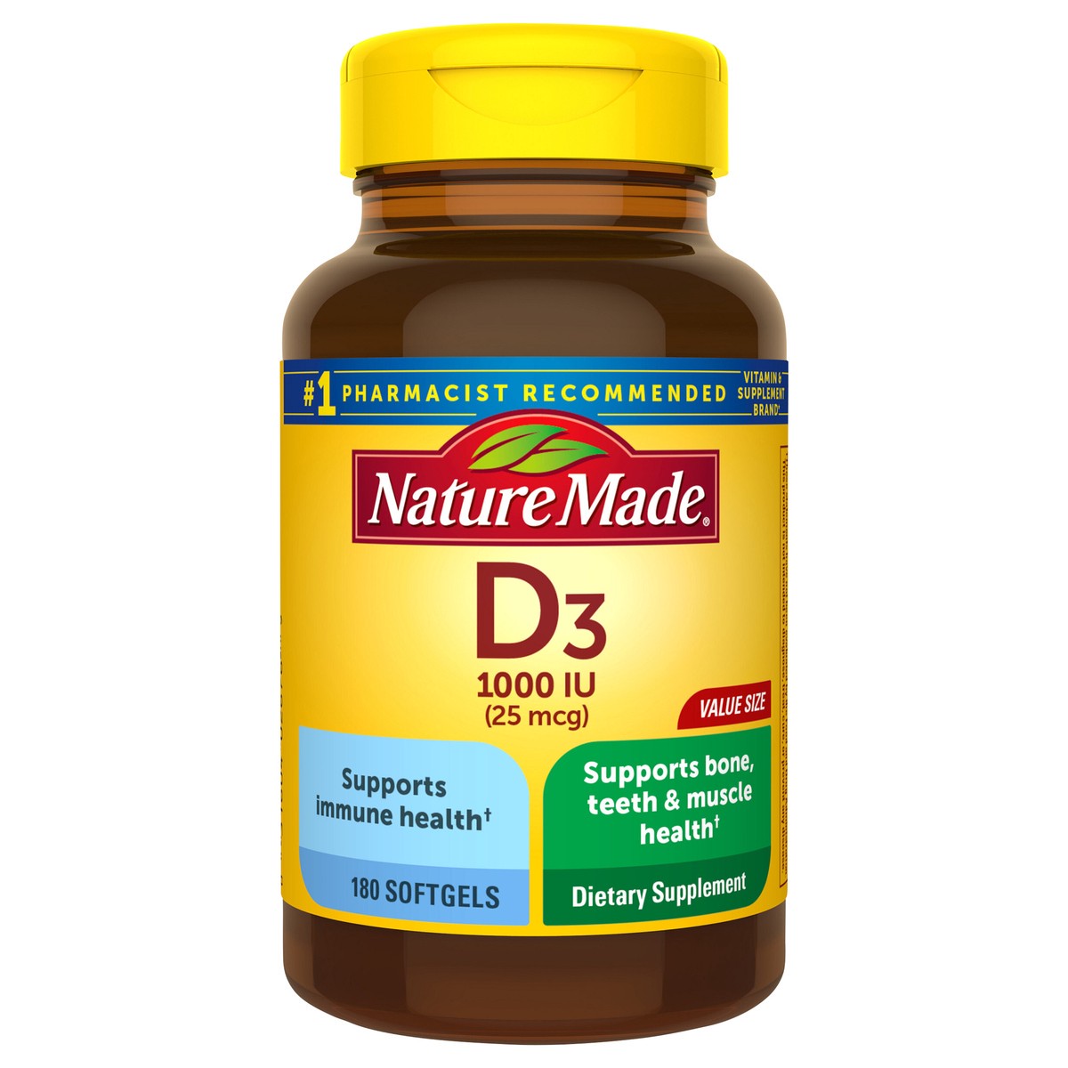 Nature Made Vitamins D3 1000 IU Softgels (25 mcg) offer an easy way to add Vitamin D supplements for women and men to your daily routine to support bone, teeth and muscle health. Sourced from high qua…