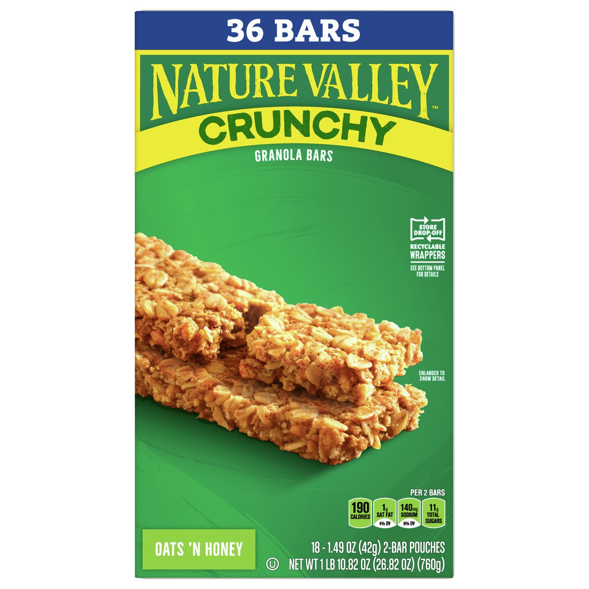 The Original Crunch. Nature Valley Oats 'n Honey Crunchy Granola Bars are a tasty snack made with whole-grain oats and a touch of honey. A portable snack perfect for the pantry, lunch box, and hiking …