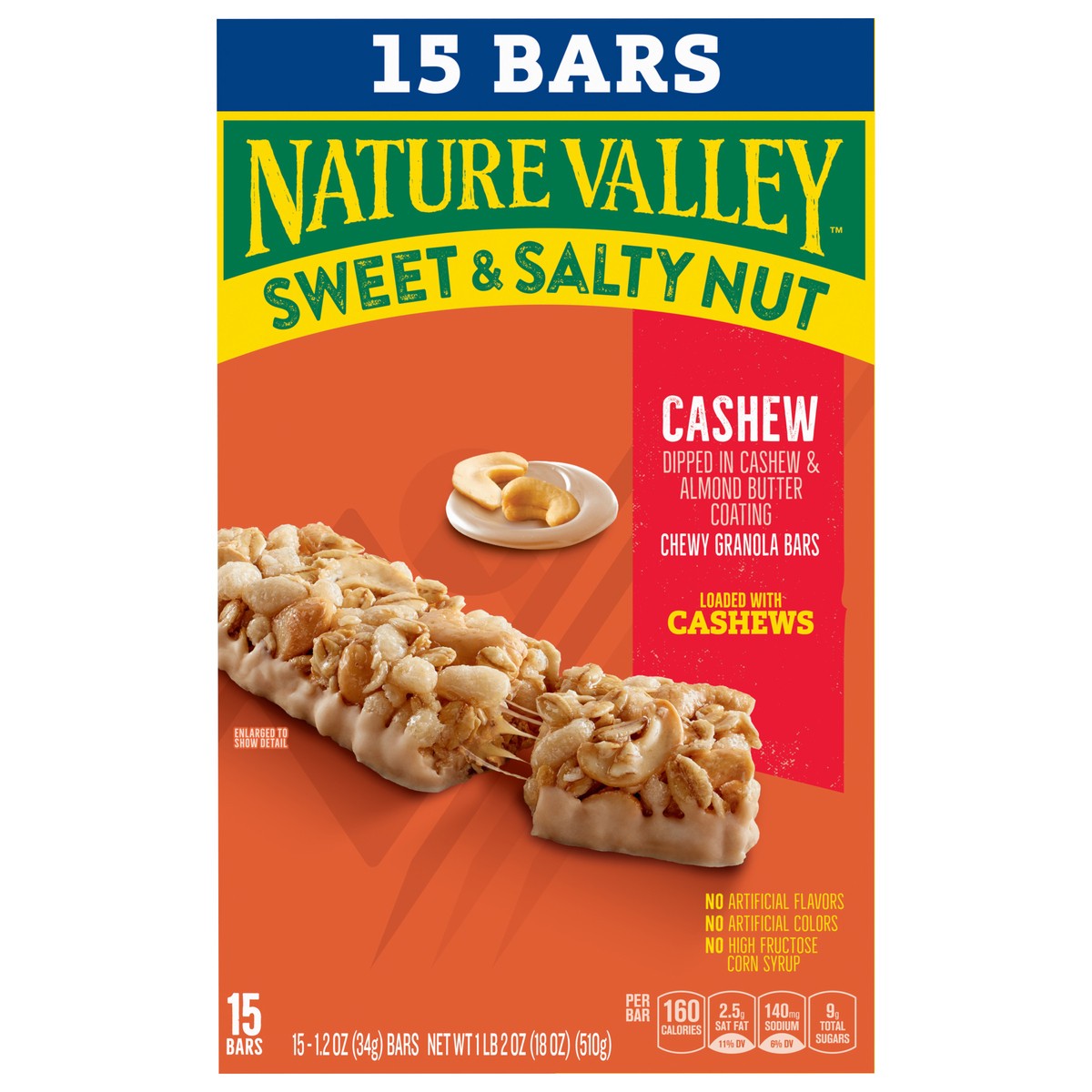 Whole Grain Oats, Corn Syrup, Cashews Roasted in Safflower Oil, Sugar, Rice Flour, Palm Kernel Oil, Fructose, Tapioca Syrup, Vegetable Glycerin, Cashew Butter (Cashew Nuts, Safflower Oil), Canola Oil,…