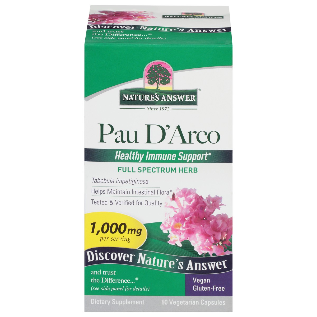 Since 1972. Healthy immune support. Full spectrum herb. Tabebuia impetiginosa. Helps maintain intestinal flora. Tested & verified for quality. Discover nature's answer and trust the difference (see si…