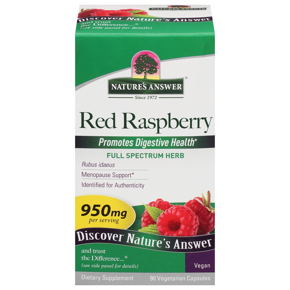 Since 1972. Promotes digestive health. Full spectrum herb. Rubus idaeus. Menopause support. Identified for authenticity. Discover nature's answer and trust the difference (see side panel for details).…