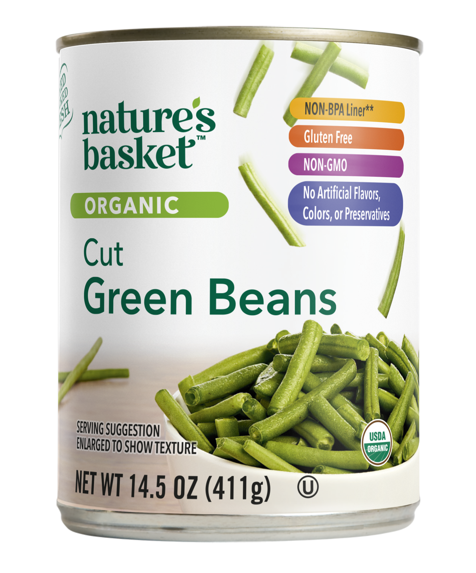 slide 1 of 1, Nature's Basket Cut Green Beans, Organic, 14.5 oz