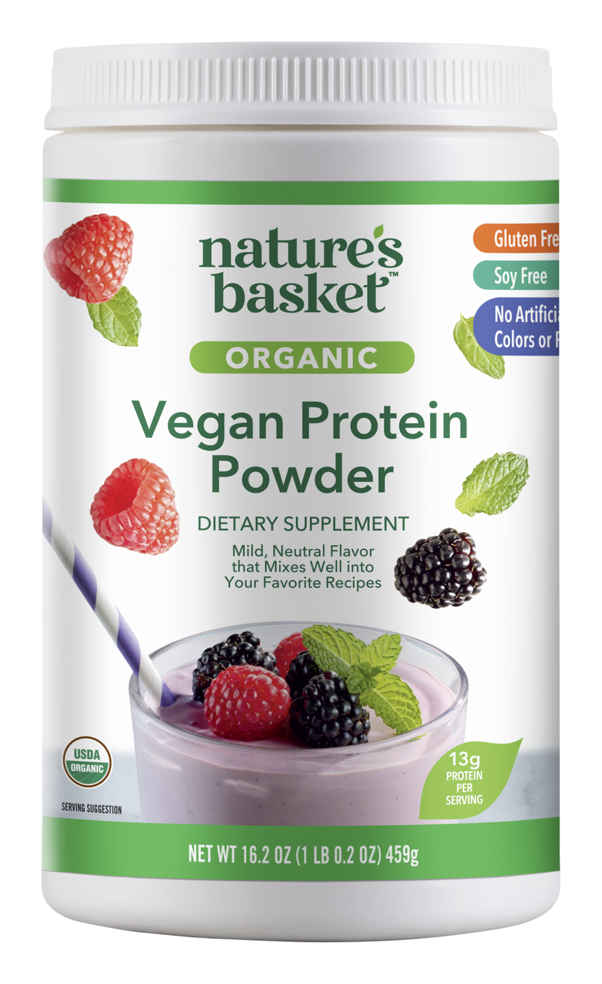 slide 1 of 1, Nature's Basket Organic Vegan Protein Powder, 17.6 oz