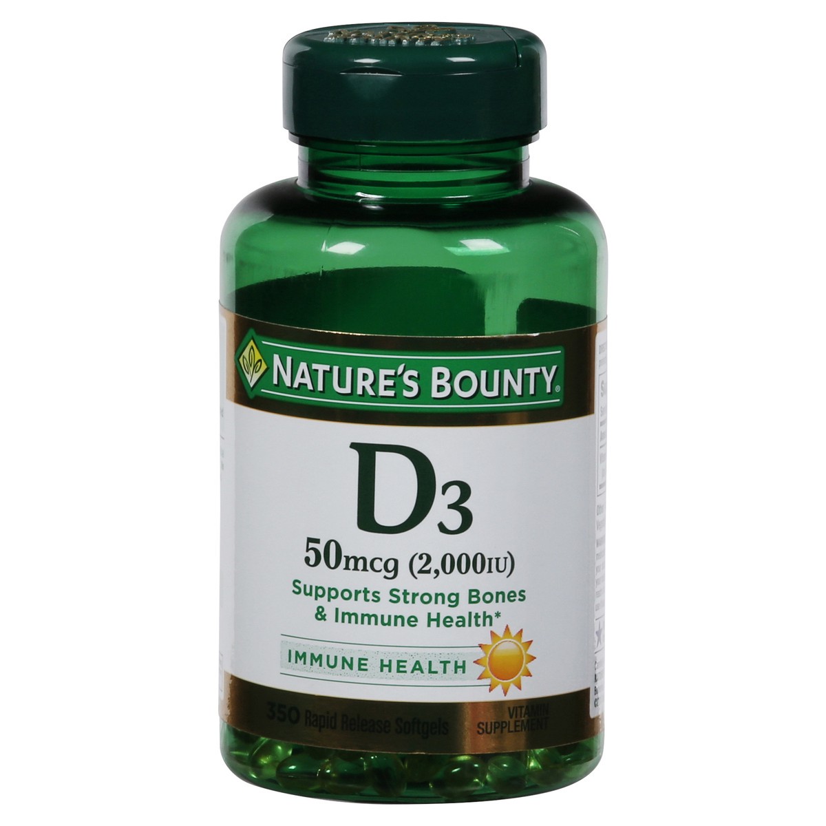 Support strong bones and immune health with Nature''s Bounty Vitamin D softgels.* With 2000 IU of Vitamin D per serving, Nature''s Bounty Vitamin D rapid-release softgels are an easy way to help suppl…