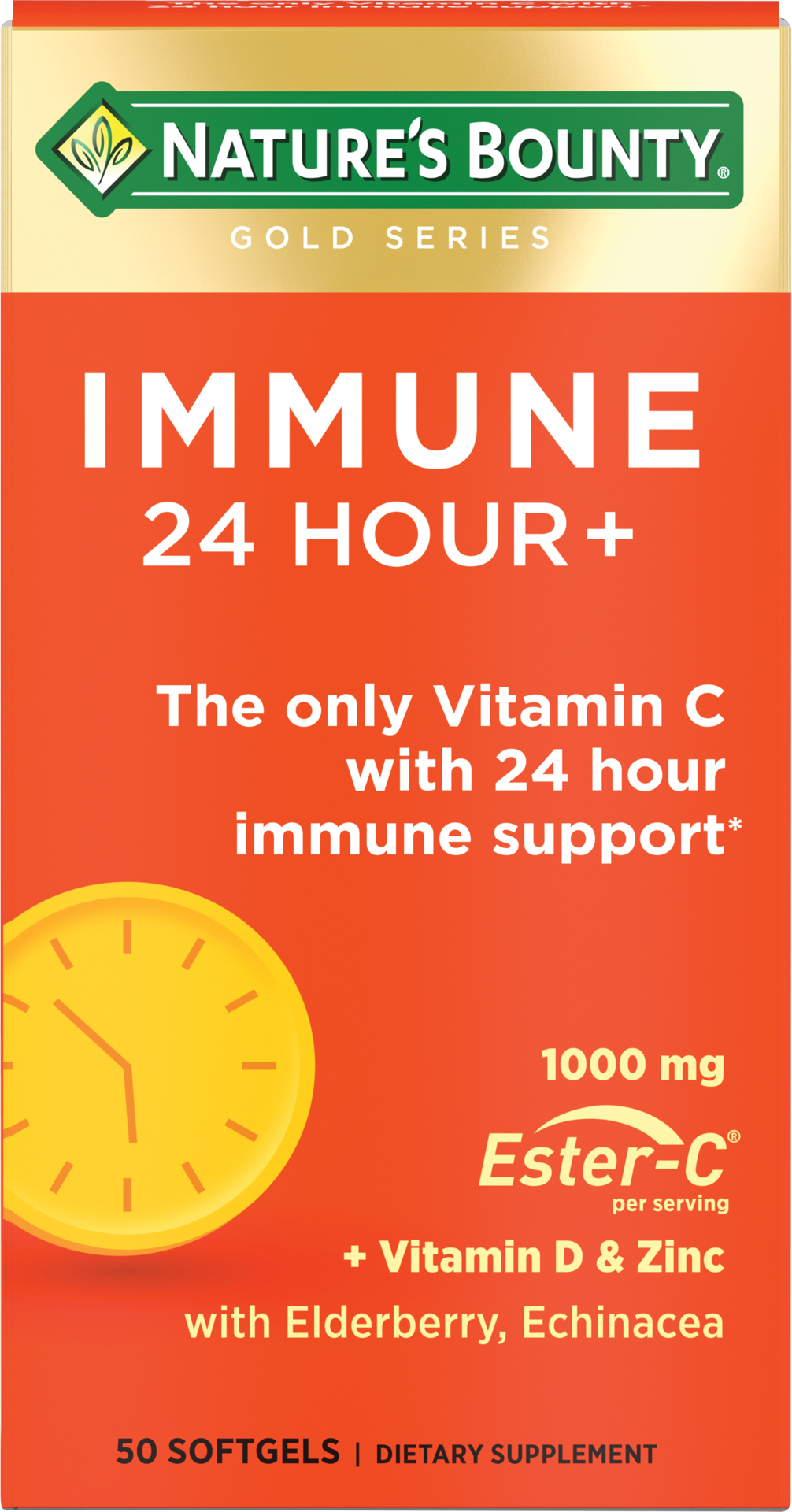 Nature's Bounty Immune 24 Hour + with Ester-C Vitamin C provides advanced, long-lasting immune support to help keep you healthy.* With 1,000 mg of Ester-C, the clinically studied immune supporting ing…