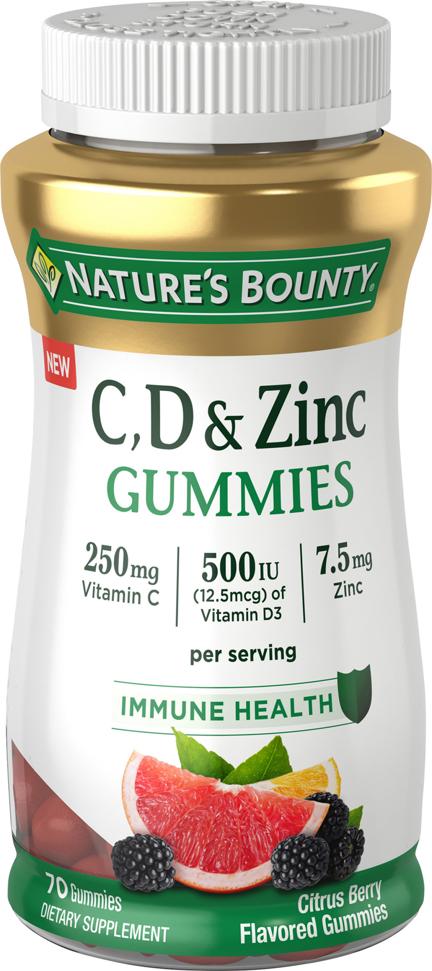 Nature''s Bounty C, D, & Zinc Gummy multivitamins are an enjoyable way to support your immune system. * With 250 mg of potent Vitamin C, 500 IU of Vitamin D, and 7.5 mg of Zinc per serving, this power…