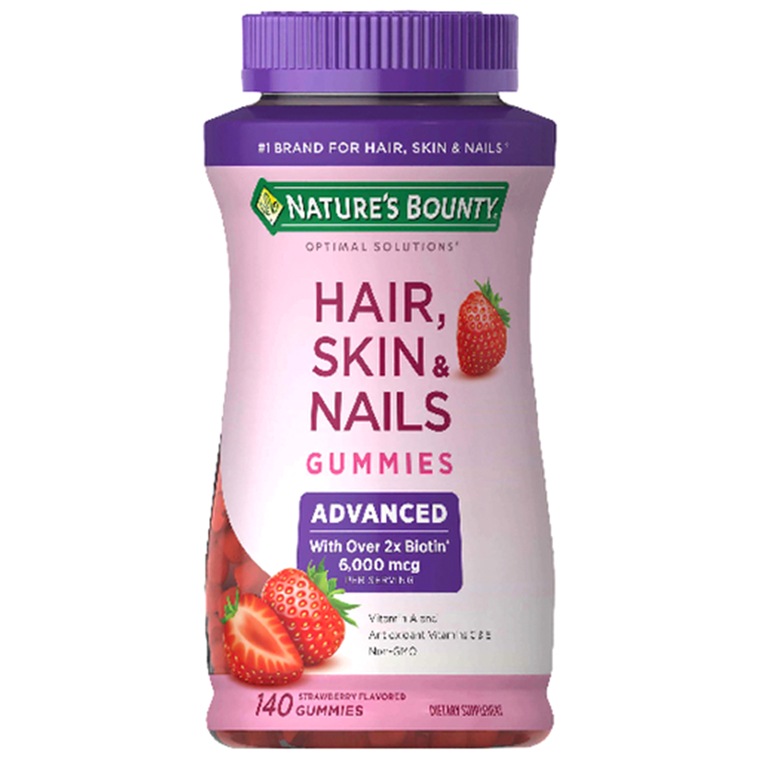 No. 1 Brand for hair, skin & nails (Source: IRI Total US - Multi Outlet: Latest 52 weeks ending 11/28/21). Advanced - with over 2x biotin (Compared to Nature's Bounty Optimal Solutions Hair, Skin & Na…
