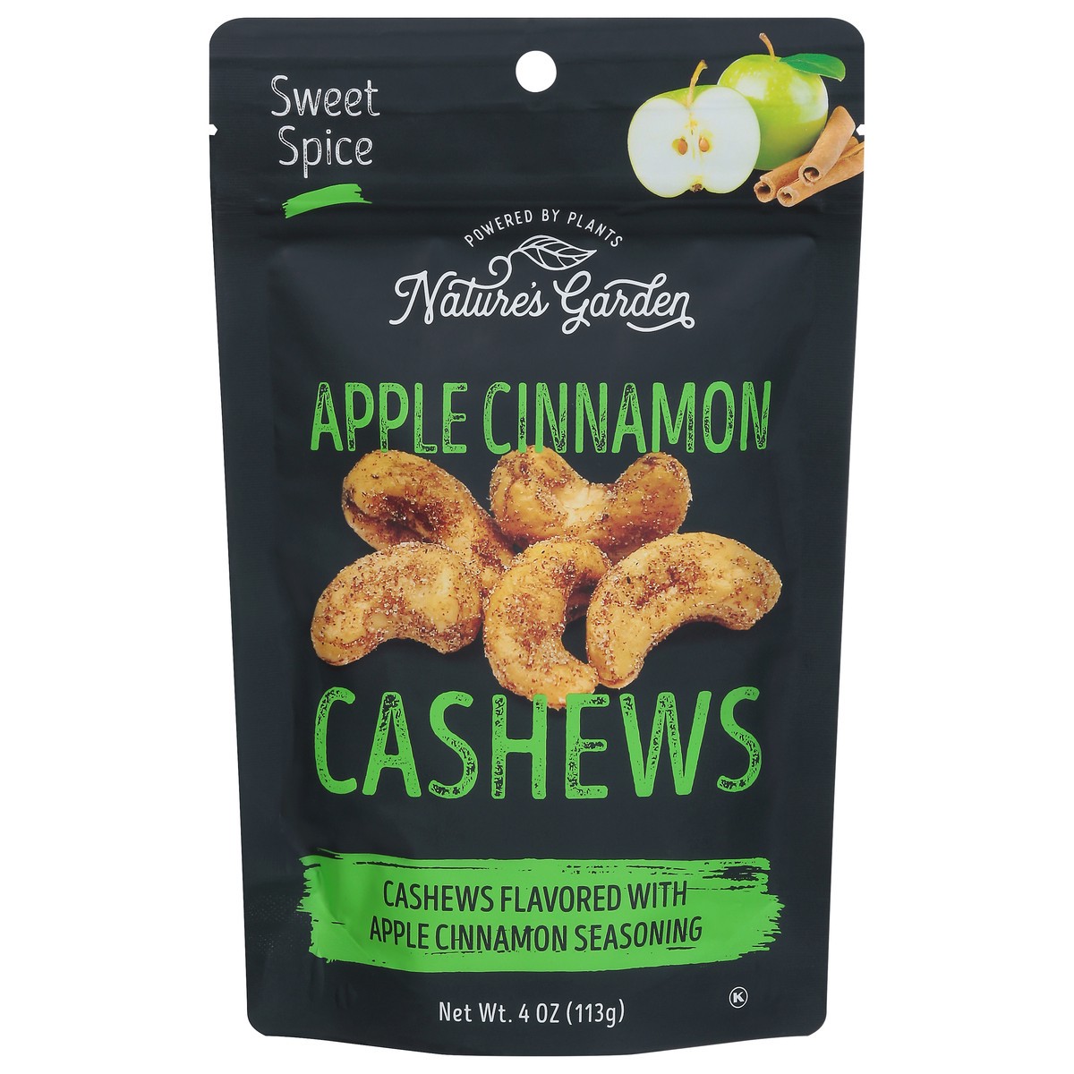 Cashews, Apple Cinnamon Seasoning (Sugar, Salt, Spices, Cinnamon, Natural Flavors, Calcium Silicate), Peanut Oil.