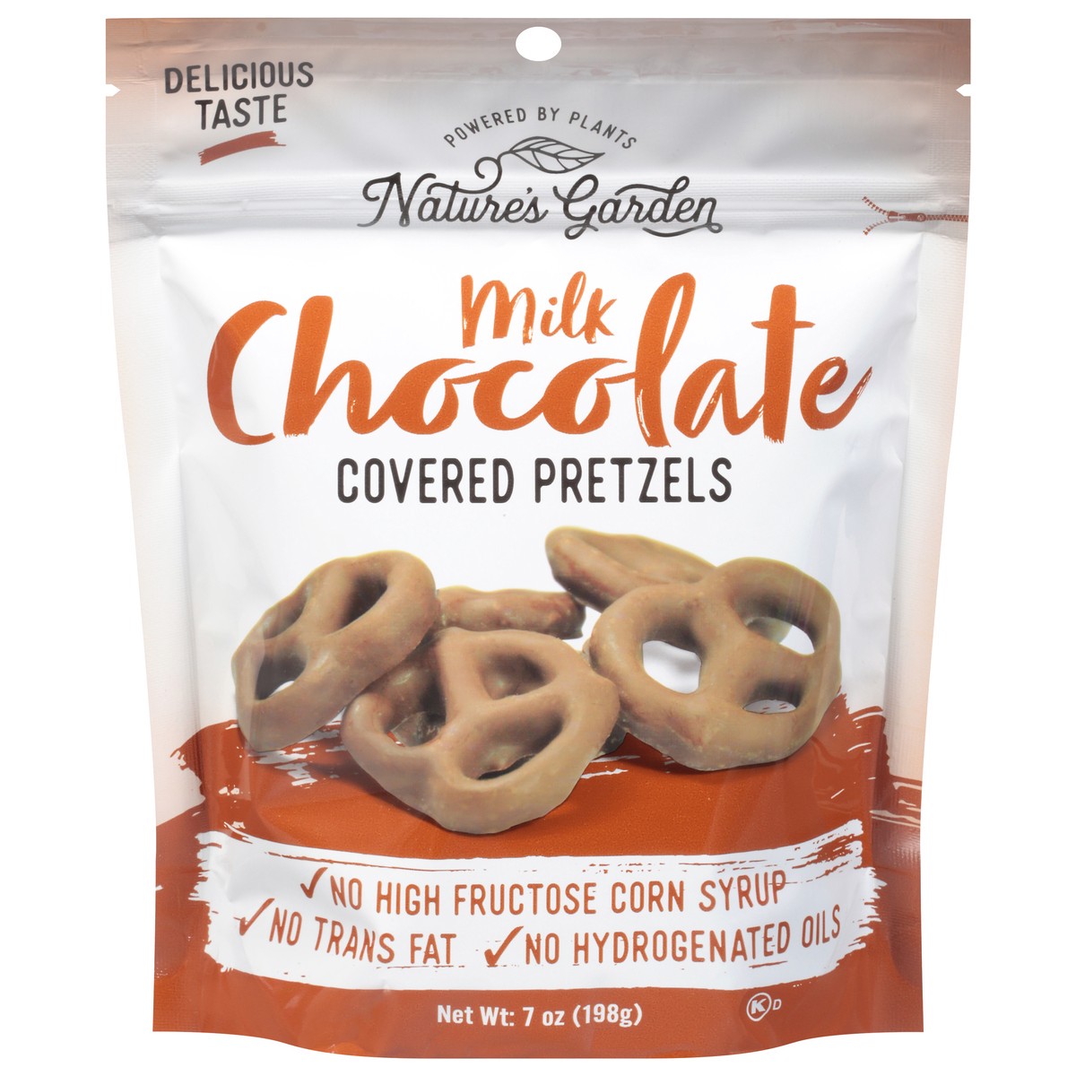 Delicious taste. Powered by plants. No high fructose corn syrup. No trans fat, no hydrogenated oils. Descend into the indulgent world of Nature''s Garden milk chocolate pretzels. By enrobing crunchy p…