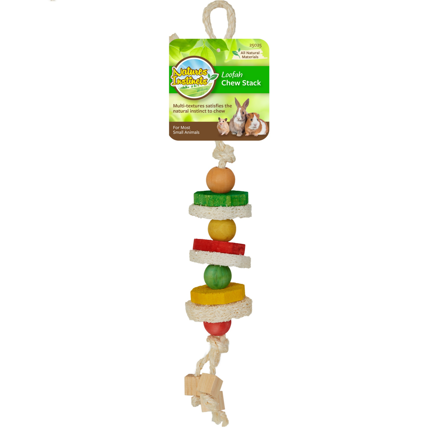 The Loofah Chew Stack is great for hamsters, rabbits, guinea pigs, chinchillas, gerbils, mice, or rats. The fun variety of chewing materials help to keep your pet's teeth trim & healthy.
