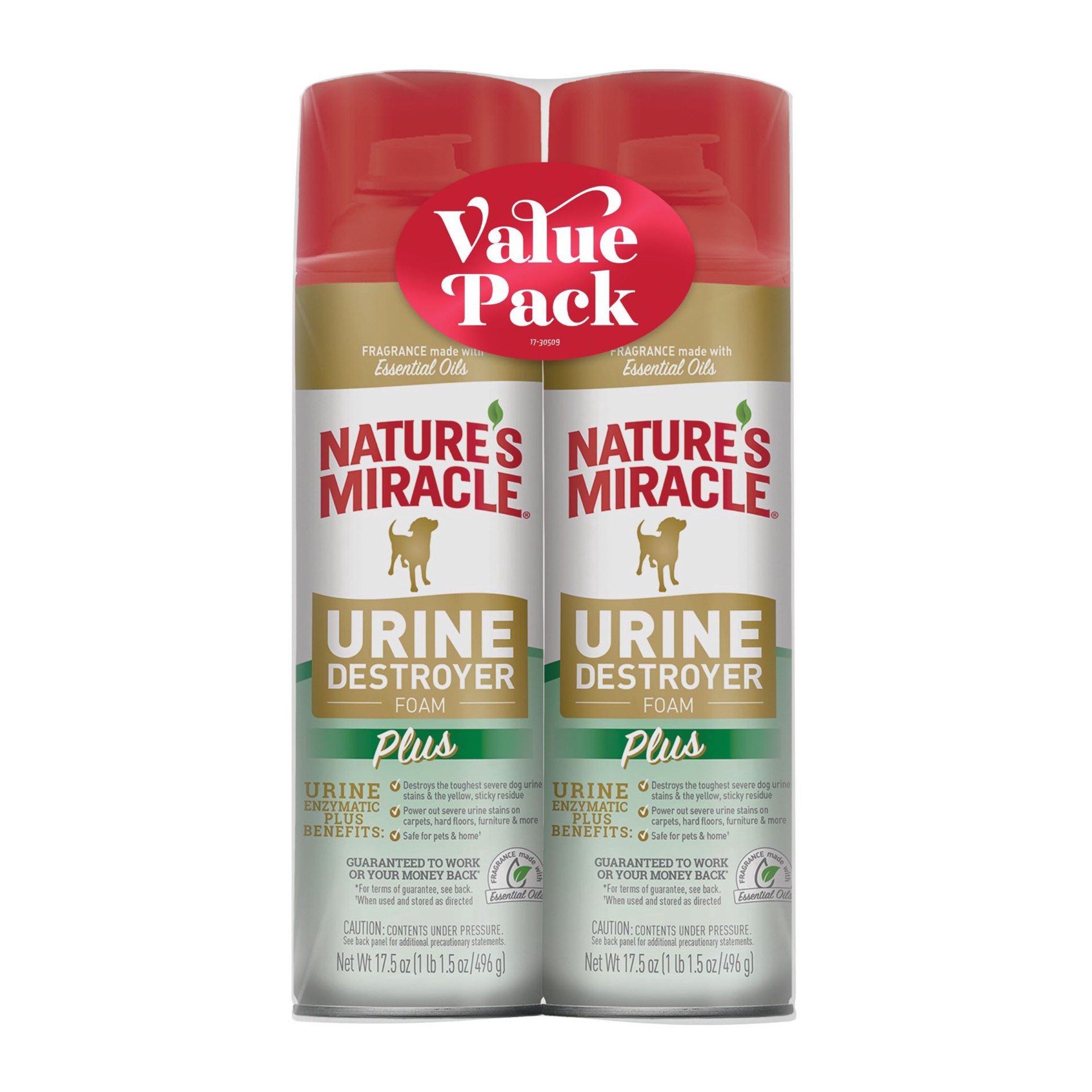 Nature's Miracle Urine Destroyer Foam Plus Value Pack Stain & Odor Remover for Dogs, 17.5 fl. oz., Pack of 2