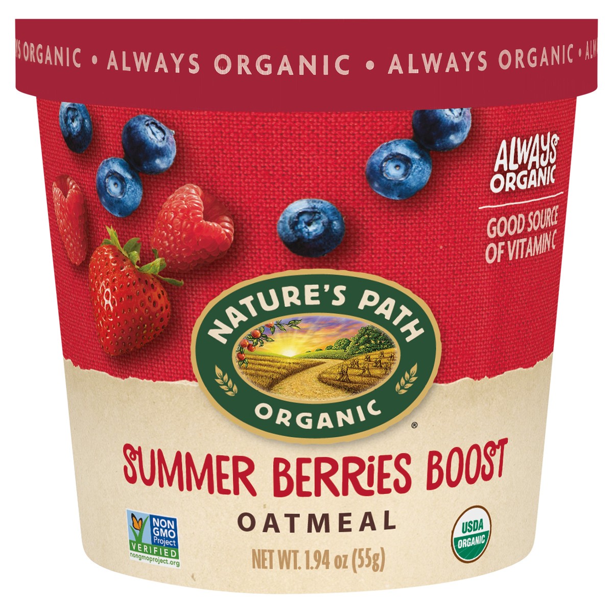 A ready-to-heat convenient cup of oatmeal; Organic, whole grain oats, combined with a delicious blend of freeze dried blueberries, strawberries and raspberries. Perfectly portioned, hugely flavorful w…