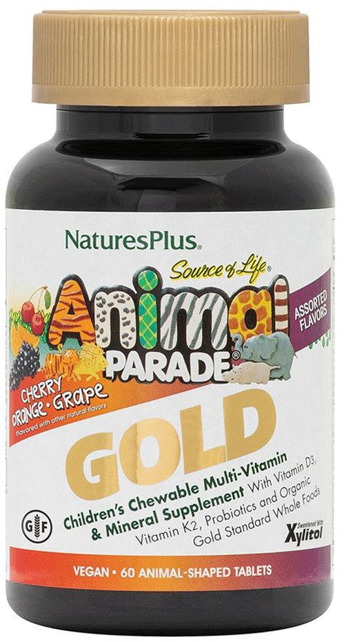 With Vitamin D3, Vitamin K2, Probiotics and Organic Gold Standard Whole Foods Animal Parade GOLD Multi Childrens Chewable takes this best-selling multi-vitamin and mineral formula to the next level! T…