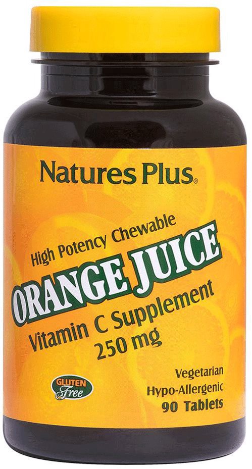 Nature's Plus Chewable Orange Juice Vitamin C Description. • Vegetarian • Hypo-Allergenic • Gluten Free This antioxidant affects many of the body's systems, including the vascular system and natural d…