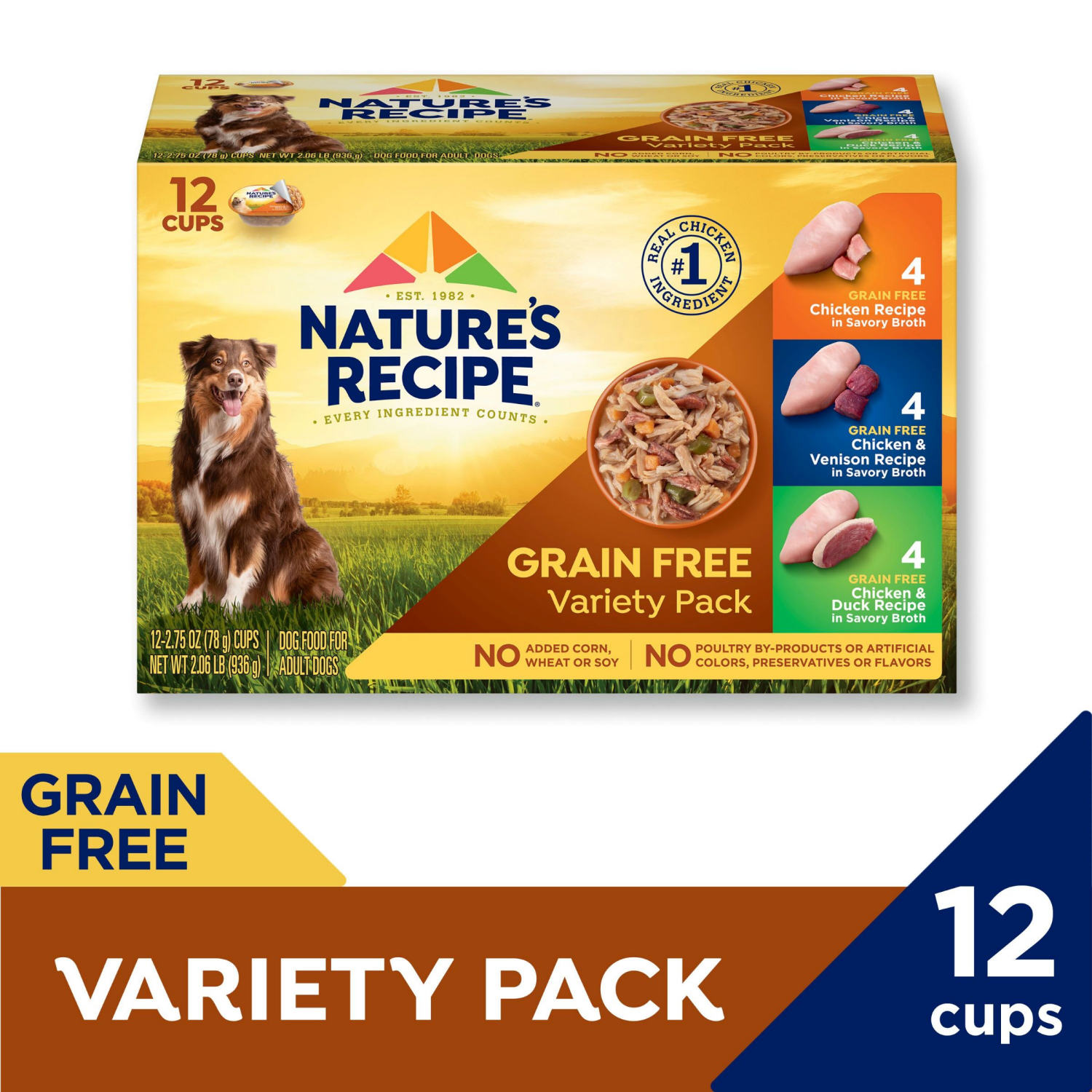 Make every meal a wag-worthy experience with Nature''s Recipe grain free dog food recipes. This wet dog food variety pack includes three delicious recipes made with real chicken as the number one ingr…