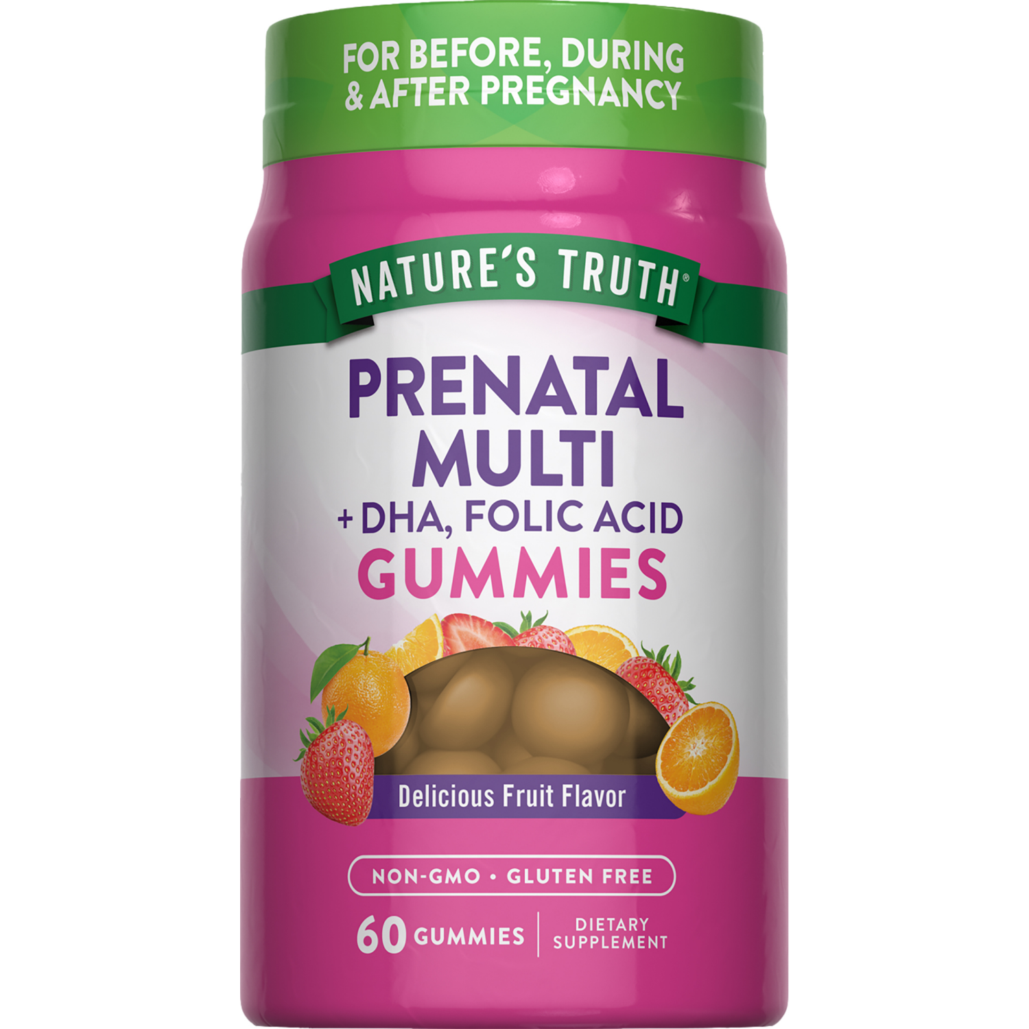Nature's Truth Delicious Fruit Flavor Prenatal Multi + DHA, Folic Acid 60 Gummies
