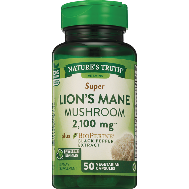 Nature's Truth® Super Lion's Mane Mushroom provides all the benefits this unique mushroom is celebrated for in a super concentrated one-per-day dose. Each vegetarian capsule provides 2,100 mg of Lion'…