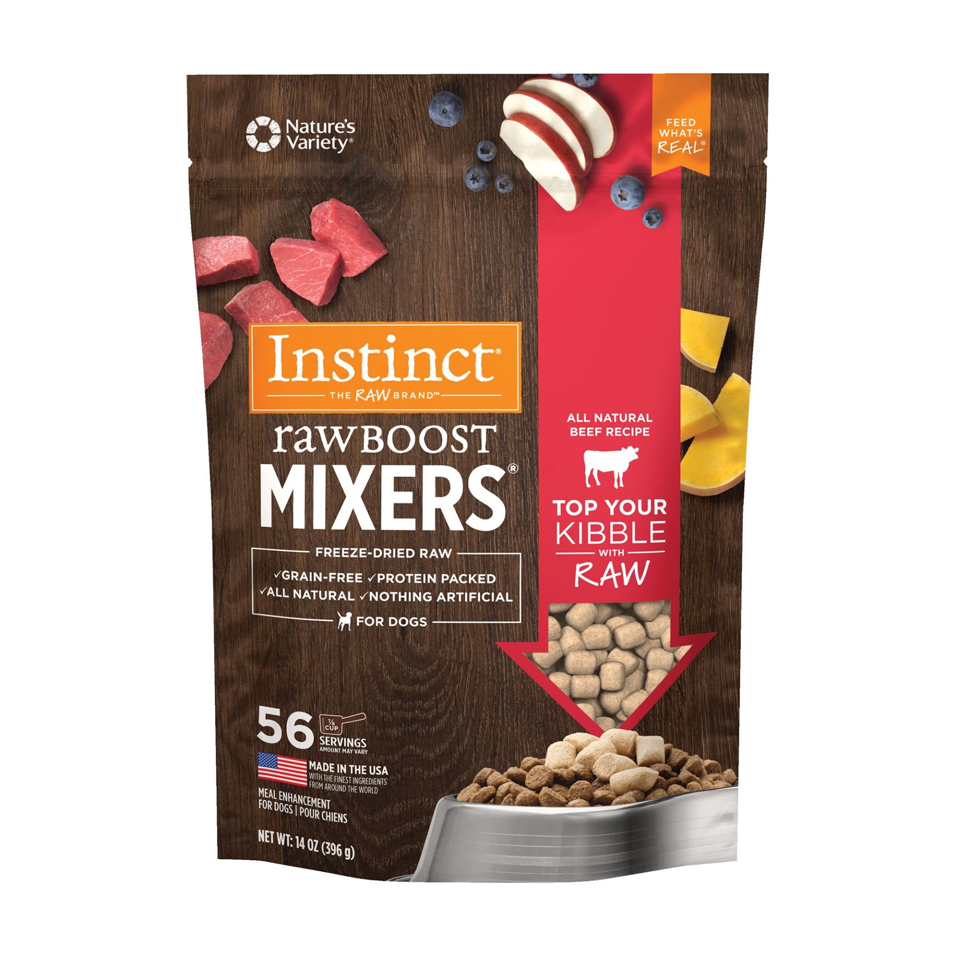Top your dog's kibble with raw. Instinct Raw Boost Mixers All-Natural Beef Recipe is the easiest way to put more of the pure, real nutrition of raw into every bowl.