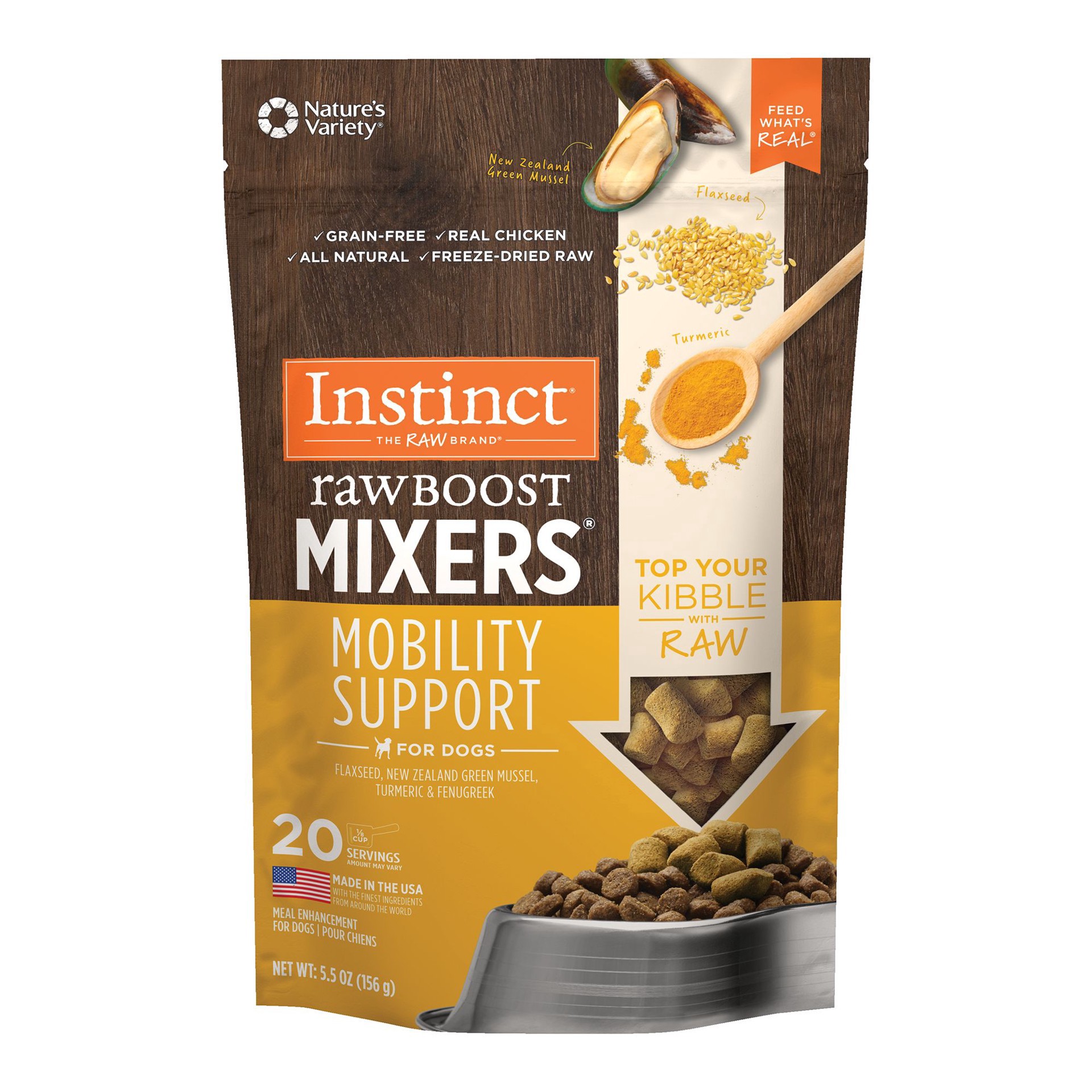 Top your dog's kibble with raw. Instinct Raw Boost Mixers Mobility Support provides natural glucosamine and chondroitin to help support healthy hips and joints. Our recipes combine cage-free chicken p…