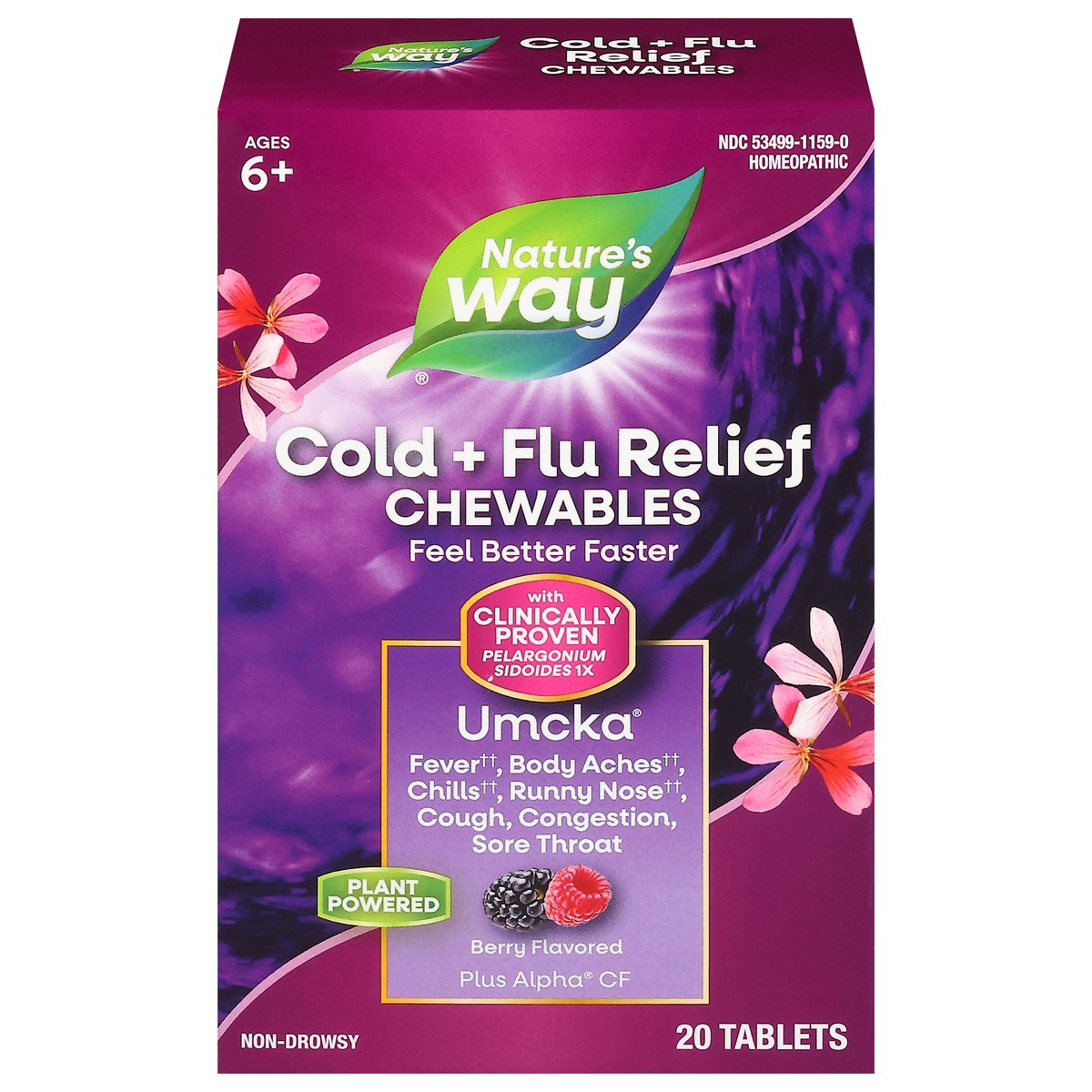 (in each chewable tablet) Active Ingredients: Pelargonium Sidoides 1X, Shortens Duration and Reduces Severity of Upper Respiratory Symptoms; †Aconitum Napellus 4X, Eucalyptus Globulus 2X, Pain Relieve…
