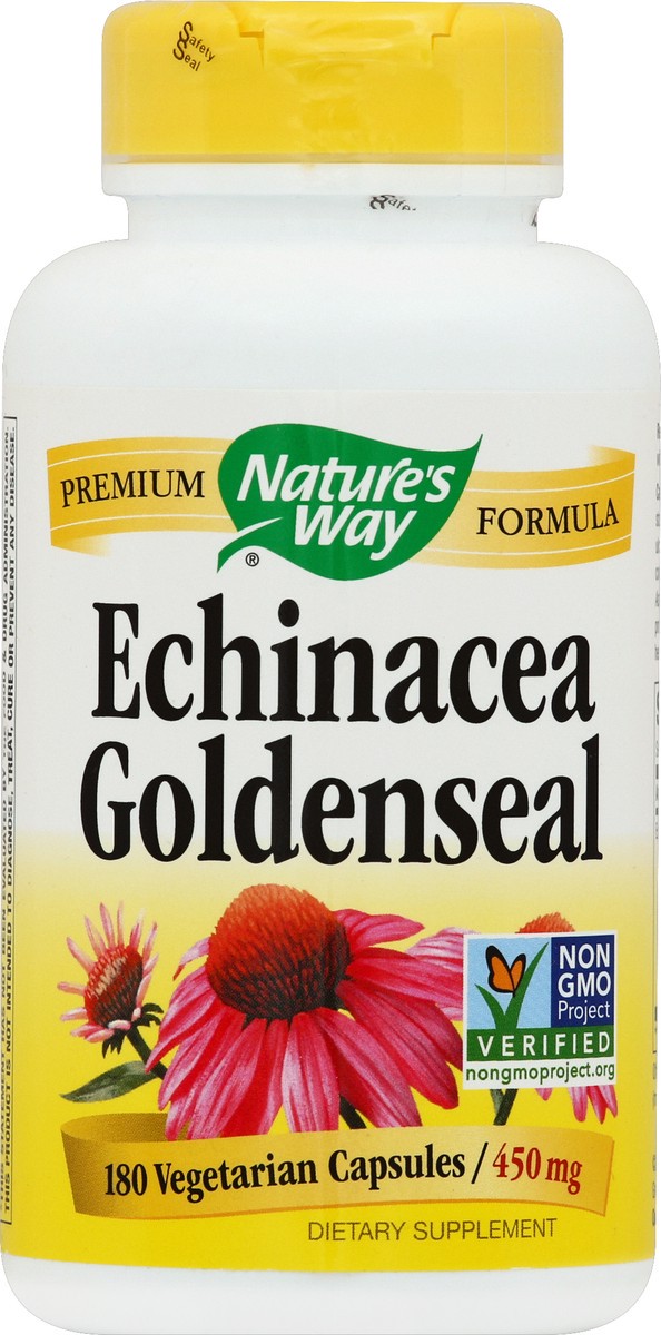 Dietary Supplement. Premium formula. Non GMO Project verified. nongmoproject.org. Health through the power of nature, that's what it means to trust the leaf. Echinacea-Goldenseal formula is a unique b…