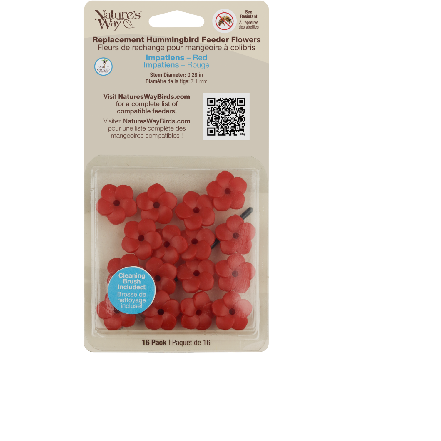 Nature's Way Hummingbird Feeder Replacement Flowers can be used to replace damaged or missing ports or customize the look of your hummingbird feeder! The sixteen soft and flexbile lifelike Impatiens f…
