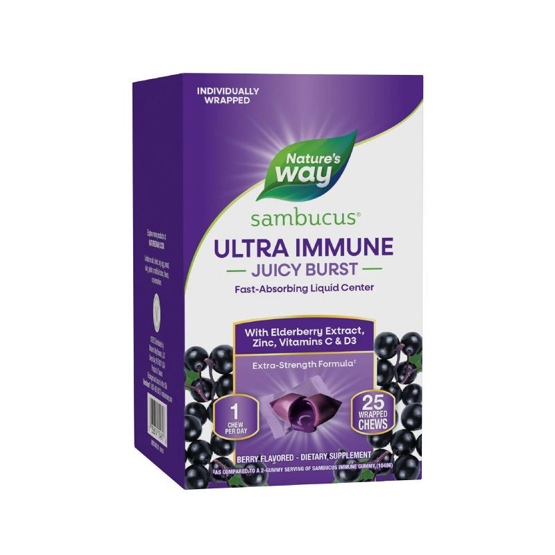 - Nature's Way Sambucus Ultra Immune Juicy Burst provides immune support in every bite.* Bite into the soft, chewy shell for a burst of juicy immune support.*