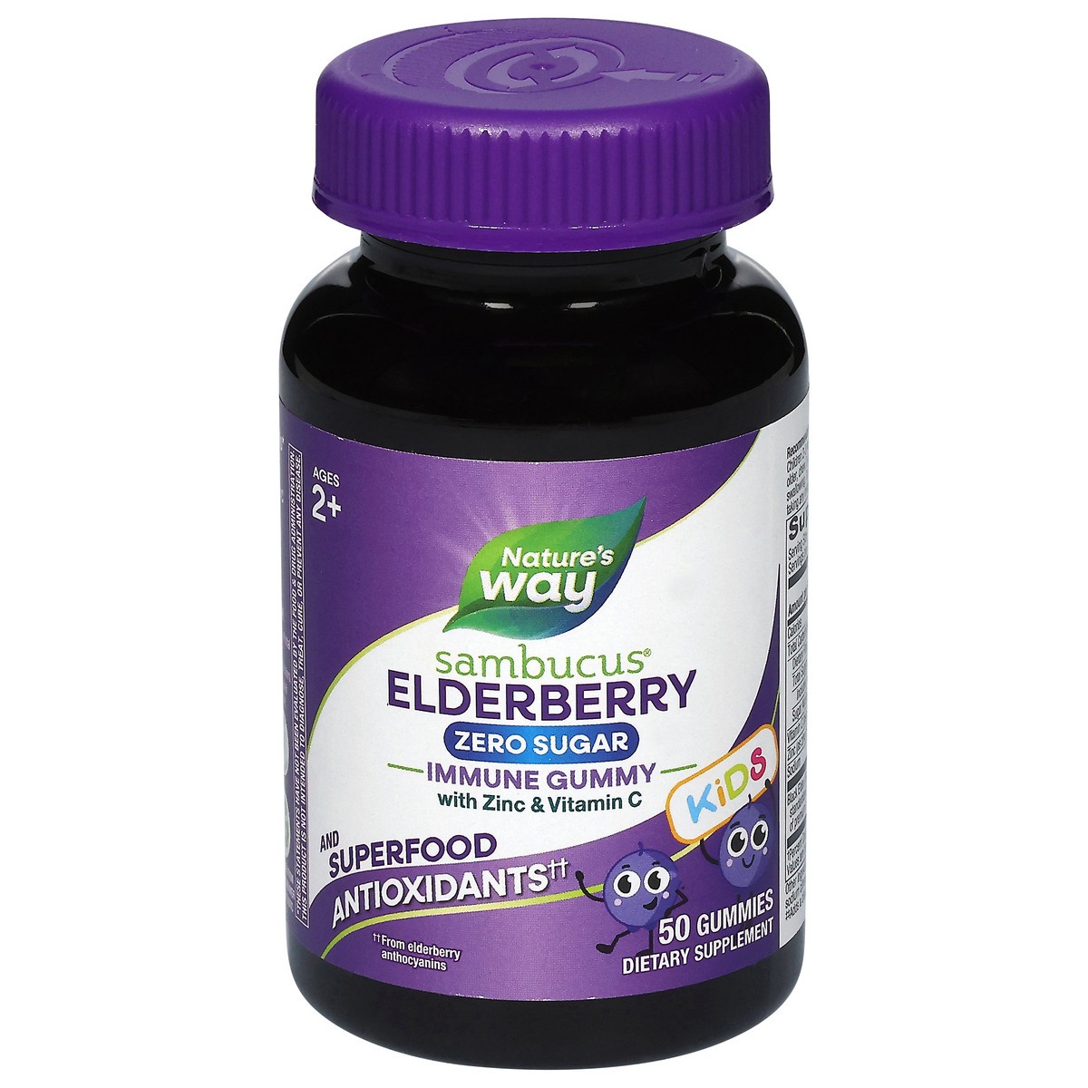 Nature's Way Zero Sugar Ages 2+ Kids Sambucus Elderberry 50 Gummies