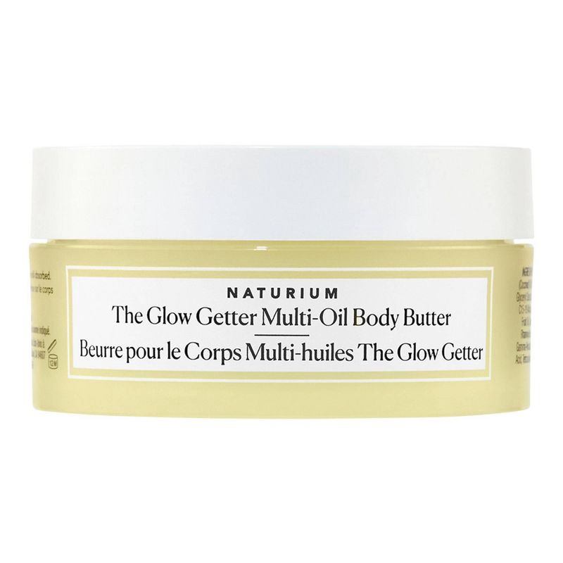 Naturium's The Glow Getter Multi-Oil Body Butter leaves skin feeling smooth & supple Moisturizes without a greasy or heavy feelHelps address firmer-looking skinCruelty Free, Dermatologist TestedPara…