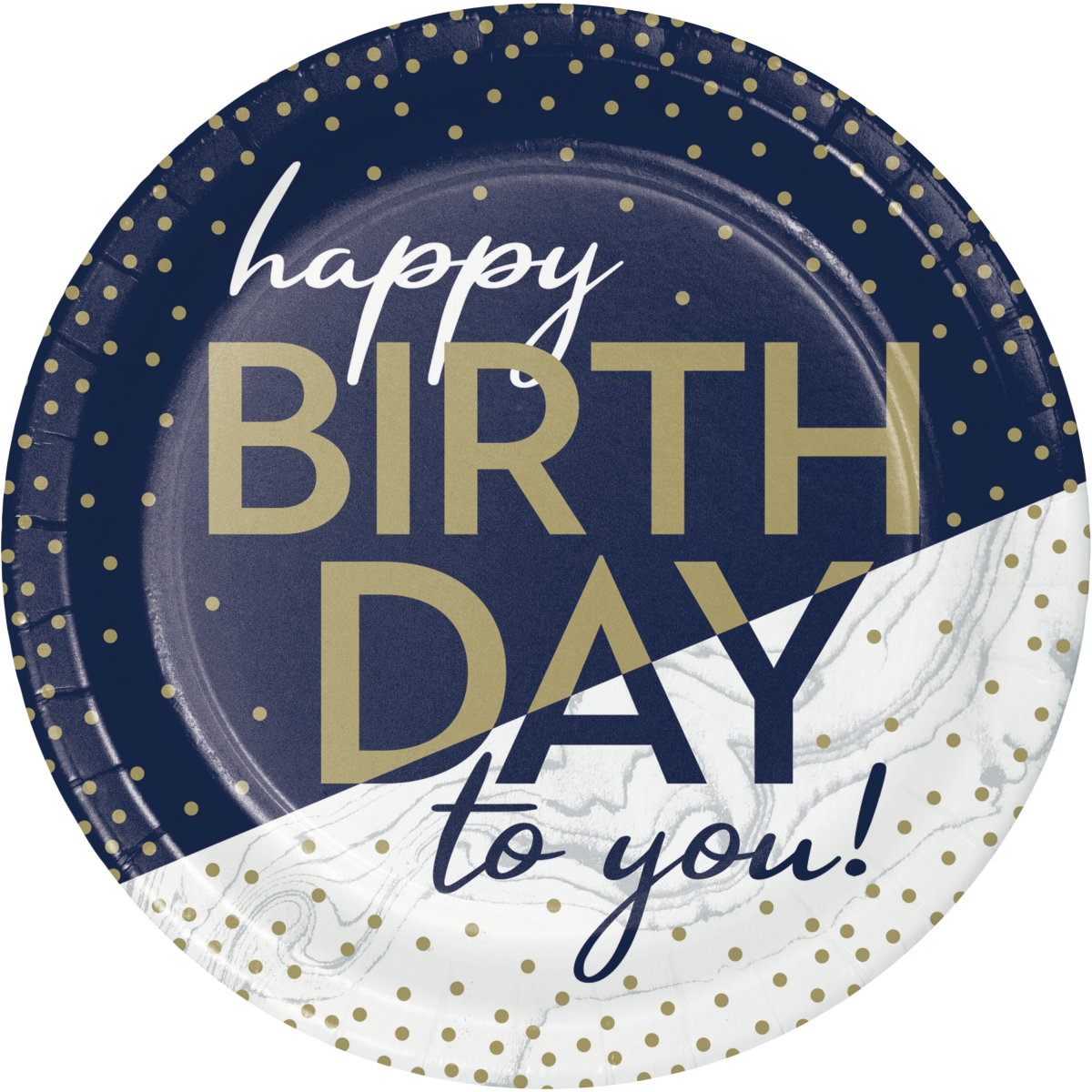 slide 1 of 1, Navy and Gold Birthday Dessert Plates, 1 ct