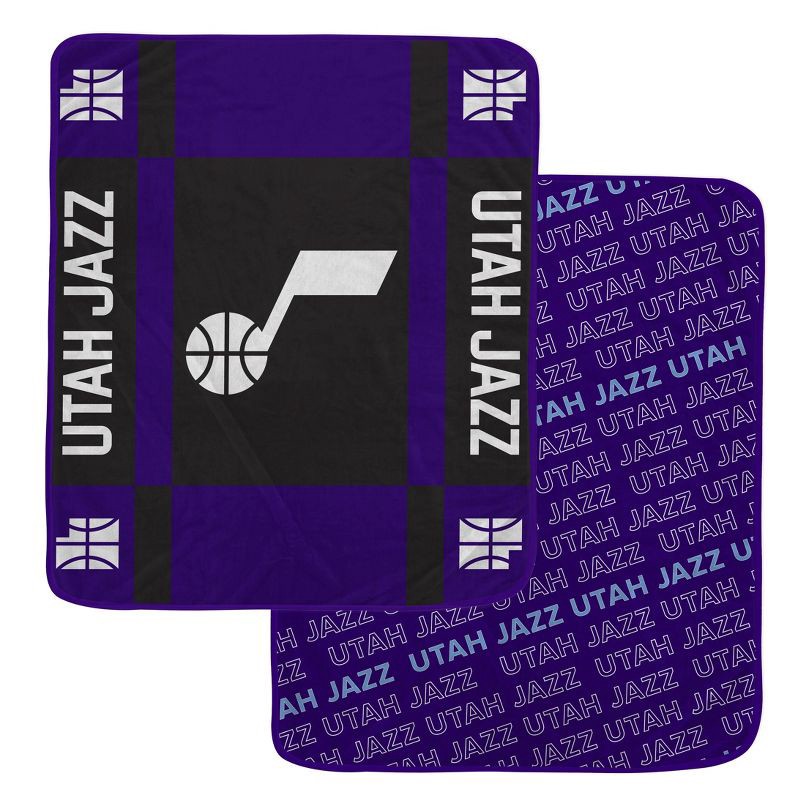 slide 2 of 3, NBA Utah Jazz 60"x70" Reverse Block Wordmark Double Sided Flannel Fleece Blanket, 1 ct