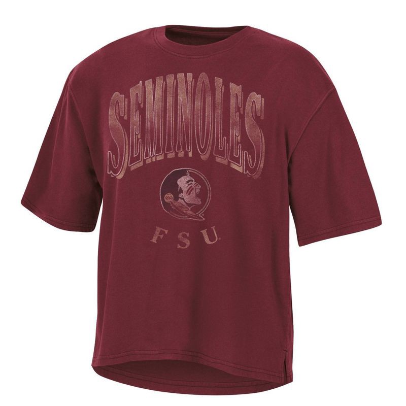 Show your NCAA team spirit in this Fashion Fit Half Sleeve Crew Tee. This tee is made of a garment dyed fabric, meaning each piece is truly one of a kind. The oversized distressed print team graphic o…