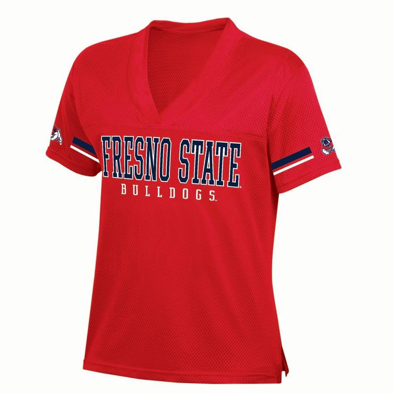 Elevate your sports fan apparel wardrobe with this Boxy Fit Short Sleeve V-Neck Jersey Tee. It's crafted of high quality polyester and recycled polyester open hole mesh, giving the jersey effect. Adde…