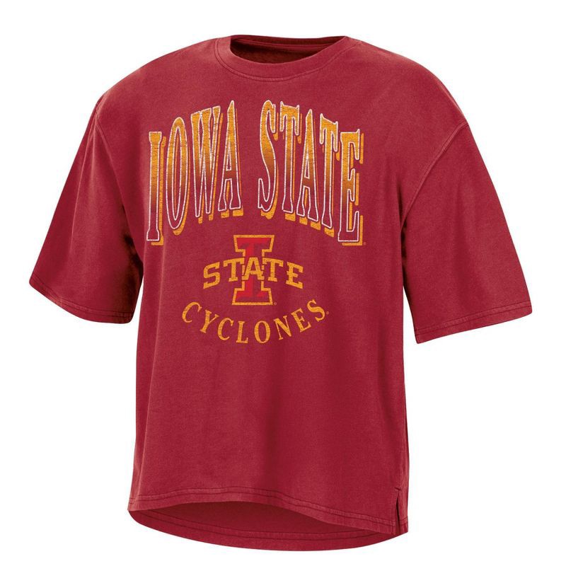 Show your NCAA team spirit in this Fashion Fit Half Sleeve Crew Tee. This tee is made of a garment dyed fabric, meaning each piece is truly one of a kind. The oversized distressed print team graphic o…