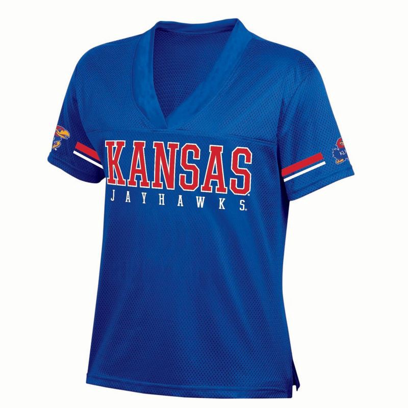 slide 2 of 3, NCAA Kansas Jayhawks Women's White Jersey - M: Polyester V Neck Pullover, Elbow Sleeve, 1 ct