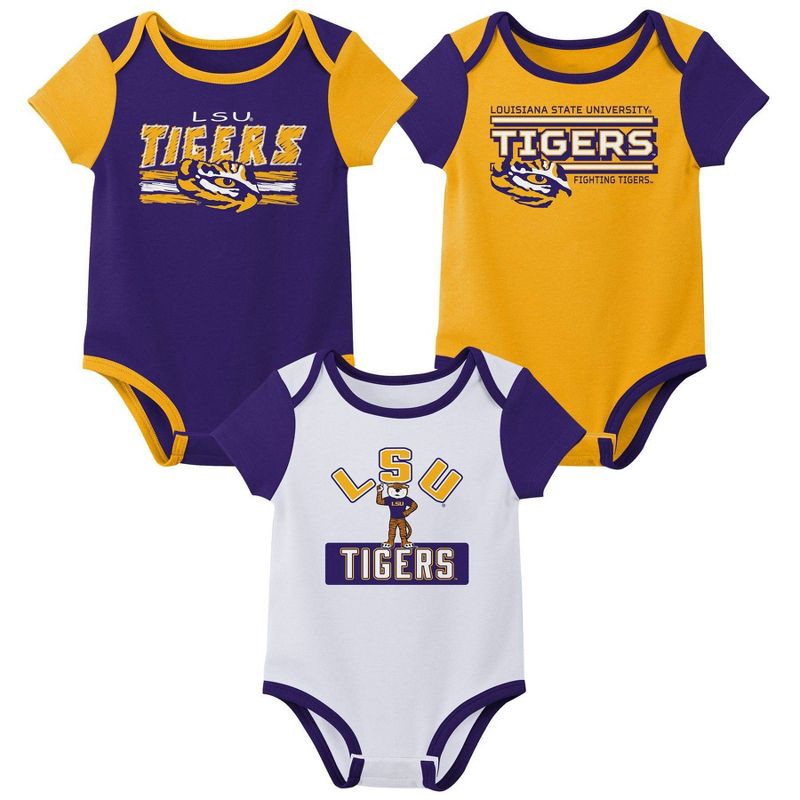 slide 1 of 4, NCAA LSU Tigers Infant Boys' 3pk Bodysuit - 12M, 3 ct