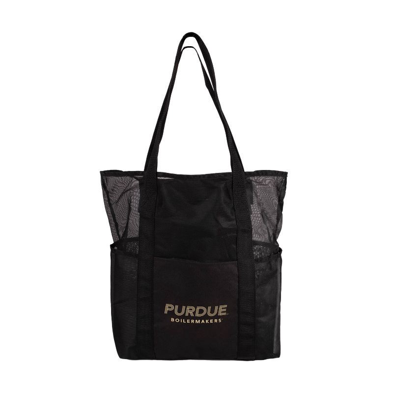 NCAA Purdue Boilermakers Black Mesh Tote: Sports Pattern Polyester Shoulder Bag