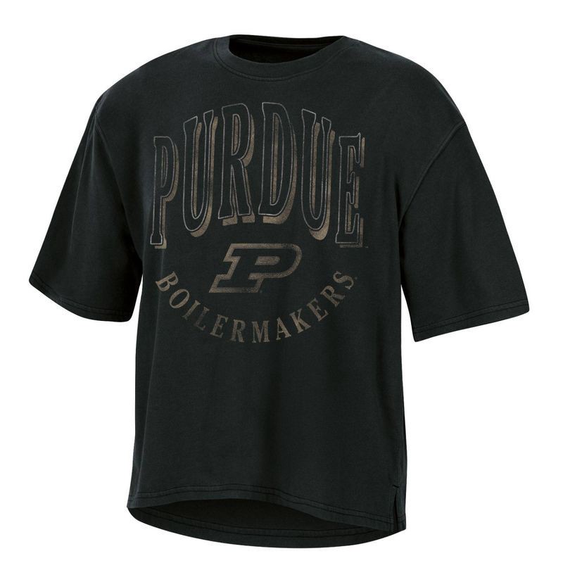 Show your NCAA team spirit in this Fashion Fit Half Sleeve Crew Tee. This tee is made of a garment dyed fabric, meaning each piece is truly one of a kind. The oversized distressed print team graphic o…
